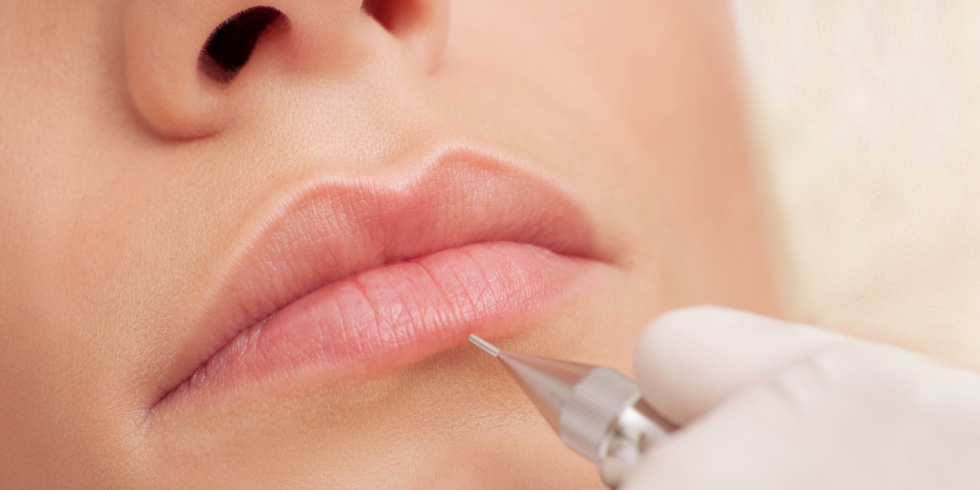 Permanent Make-Up für Lippen. Dezentes helles Highlight der Oberlippe.